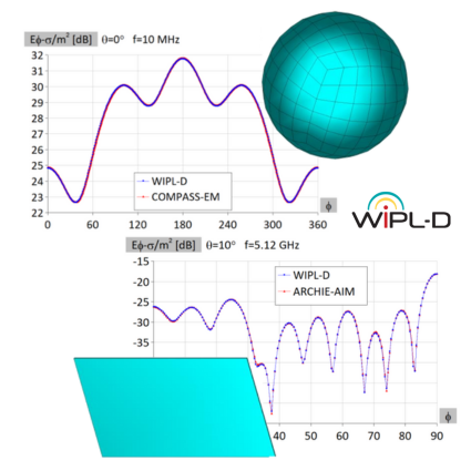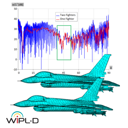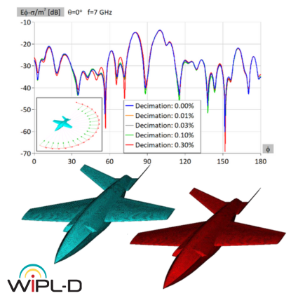 WIPL-D suite enables EM simulation of airplane Radar Cross Section and geometries at high frequencies. WIPL-D Pro CAD allows import from popular CAD formats, model validation, and removal of irrelevant details. Its automated mesher subdivides geometries into quadrilaterals, modeling curvatures and small features while minimizing EM requirements. Simulations use higher-order basis functions, 30 unknowns per λ² for metallic surfaces, and features to reduce unknowns without losing accuracy. CPU/GPU simulations run efficiently on inexpensive hardware. Examples include monostatic RCS of F16 (0.1–3 GHz), F35 (0.1–4 GHz), and F35 at 10 GHz using DDS Solver on multicore, multi-GPU workstations, with simulation times in hours.