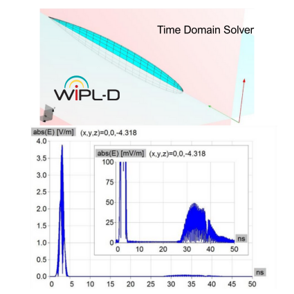 This application note describes time-domain Radar Cross Section (RCS) simulation using WIPL-D Software suite, specifically WIPL-D Pro and WIPL-D Time Domain Solver. A metallic NASA almond is illuminated by a plane wave with Gaussian-modulated sine. The object is about 60 wavelengths long, 4 wavelengths high, and 0.2 wavelengths thin, with polarization parallel to the longer semi-axis of its cross-section. Two symmetry planes reduce unknowns, and the object is modeled as a Body of Rotation (BoR). Simulations run on a regular desktop or laptop, showing that WIPL-D Time Domain Solver combined with the efficient MoM solver WIPL-D Pro is suitable for time-domain analysis. Simulation time is measured in minutes for over 100 frequency points.