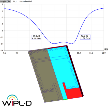 This application note describes the design and full-wave simulation of a Substrate Integrated Waveguide (SIW) Cavity-Backed Slot Antenna using WIPL-D Pro CAD. The antenna operates in the 8-12 GHz (X-band), with return loss (illustrated together with the antenna top-view design), radiation pattern, gain, and near-field distribution as key results. The model is implemented on a Rogers RT/duroid 5880 substrate, with the SIW structure realized by metallic vias designed to suppress leakage.